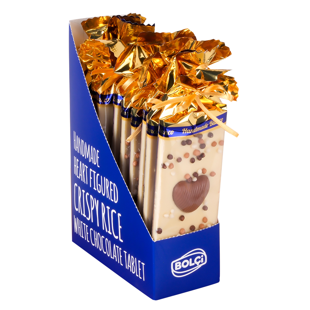 Kalp Desenli – Pirinç Patlaklı Beyaz Tablet Çikolata 60g